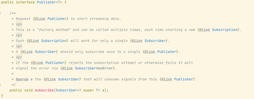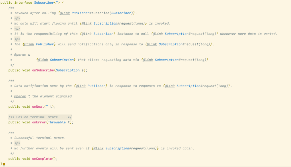 En el caso de éste actor, implementan la interfaz Subscriber. Si la analizamos, contamos con 4 funciones a implementar: